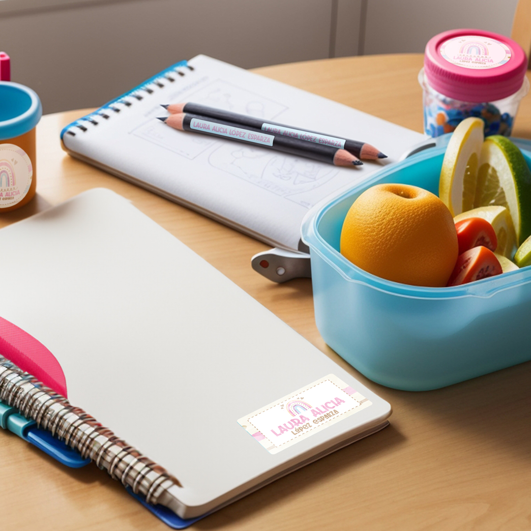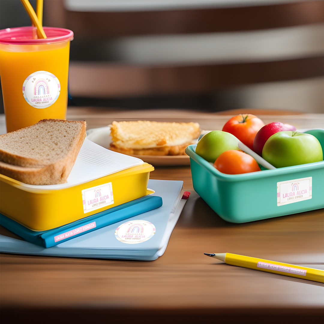 Con nuestras etiquetas adhesivas personalizadas, puedes etiquetar una variedad de objetos para ayudar a mantener todo organizado e identificado las pertenencias de tus pequeños y pequeñas. Desde Útiles escolares hasta loncheras y botellas de agua, articulos de higiene personala, equipo deportivo, equipos electrónicos, y muchos más.