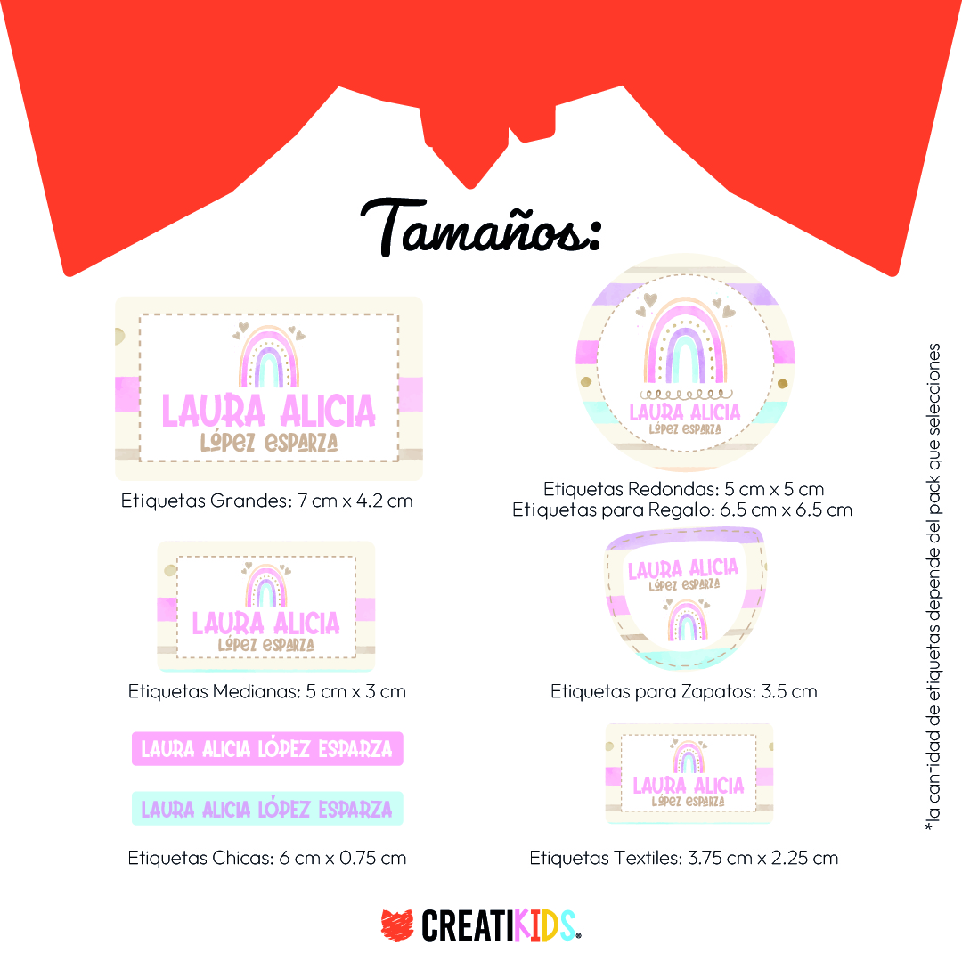 Para los más pequeños, nuestras etiquetas escolares están disponibles en packs diseñados especialmente para cada nivel educativo. El pack de etiquetas para guardería incluye etiquetas planchables y adhesivas, perfectas para ropa, mochilas y objetos personales. El pack de etiquetas para primaria ofrece una variedad de opciones coloridas y resistentes, ideales para libros, útiles escolares y más.