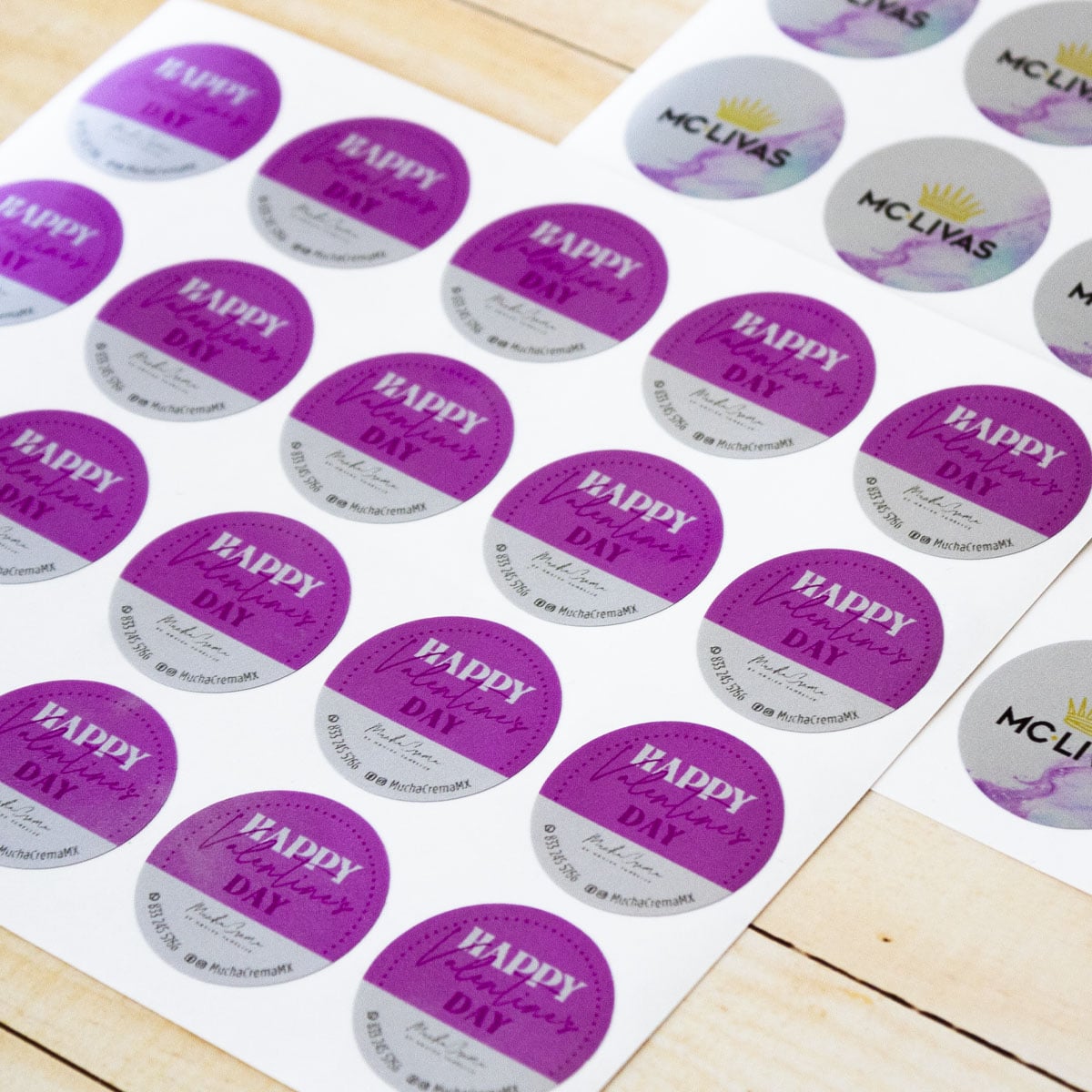 Se entregan múltiples etiquetas semi troqueladas en planillas (el tamaño de cada planilla depende de la medida de tu etiqueta).